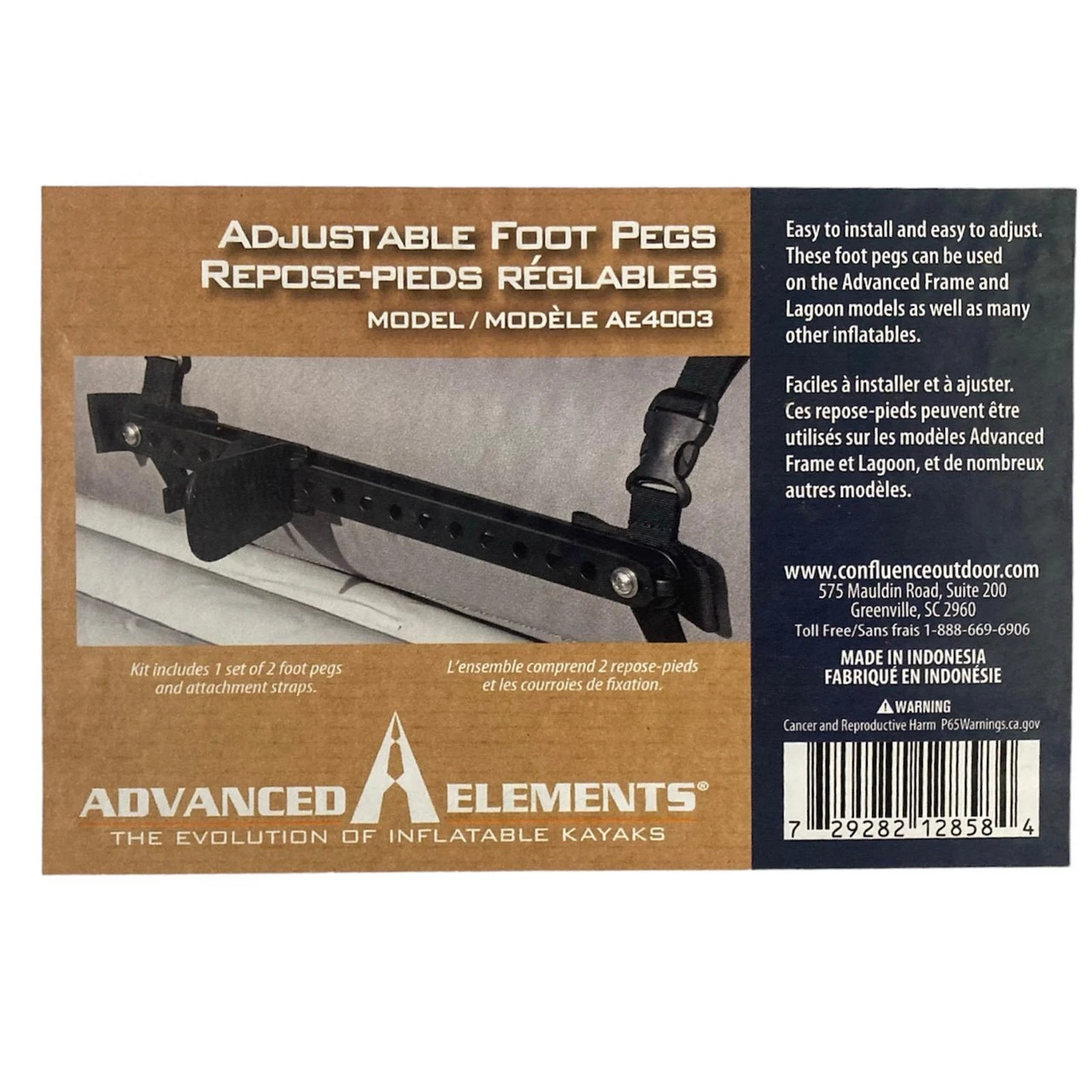 Get more leverage, stability, and comfort while paddling. Simply attach the foot peg set, utilizing the adjustable webbing straps, and adjust your foot position as you go. Designed to fit the AdvancedFrame lineup as well as the Lagoon 2 and StraitEdge 2 models.