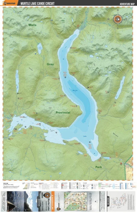 Highlighting the Murtle Lake area of Wells Gray Provincial Park British Columbia, this map features the canoe routes and access points, campsites, cabins, portage trails with distance markers, fish species, hiking trails and waterfalls. This Adventure map can be used for fishing, camping, exploring, canoeing, kayaking, wildlife viewing and more! With 1:10,000 water and road data and covering 2,715 sq. km (1,050 sq. mi), this map includes Murtle Lake, Wells Gray Provincial Park, Anderson Lake, Blue River, Diamond Lagoon, Henrietta Lake, McDougall Falls, Murtle River and more!
