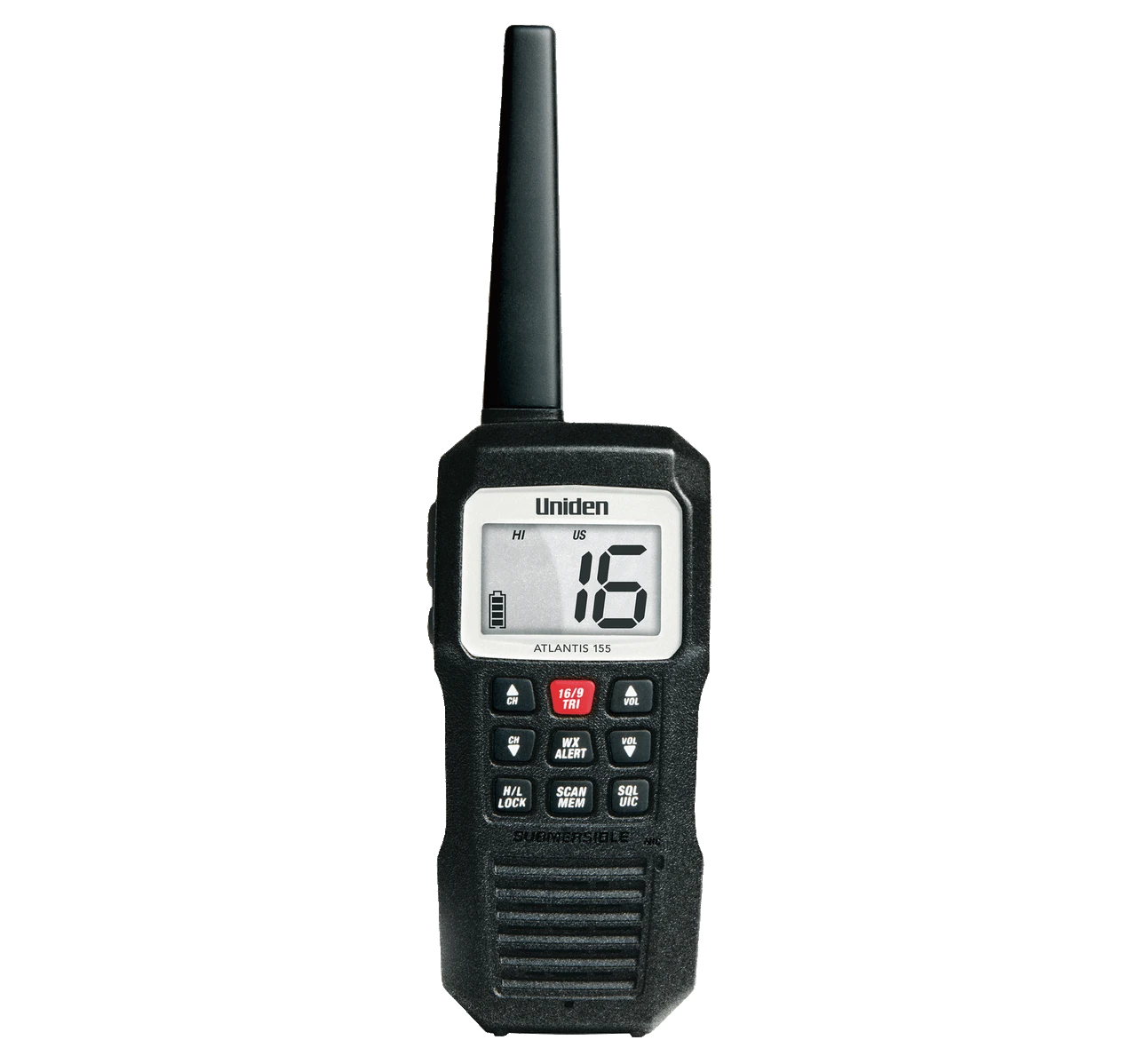 The Uniden Atlantis 155 continues Uniden’s tradition of providing tough and reliable handheld radios. It features all NOAA weather channels, as well as all USA, International and Canadian marine channels. It also meets JIS8 Submersible waterproof standards. The Atlantis’ brilliant backlit LCD display makes it easy to use, day or night for the power to go anywhere.