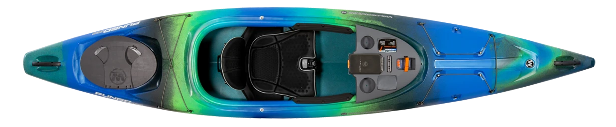 - Pungo Dashboard: The Pungo also has an upgraded dashboard which offers paddlers convenience and many options for customization. It features a removable drybox, two cup holders, SlideTrax™ to hold mounts for phones, fishing rods and other accessories, and two customizable mounting platforms. There is also a recess designed for the Wilderness Systems Lithium Battery (sold separately) which keeps your electronics charged on the go.